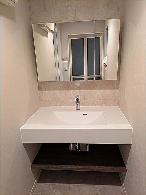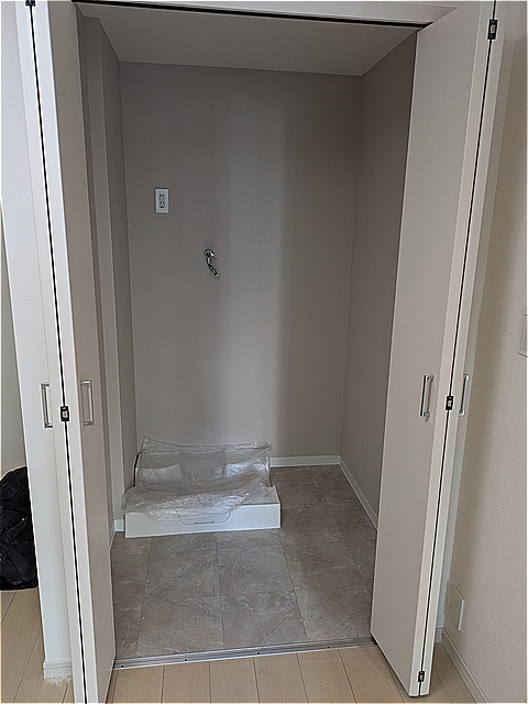 洗面室にあった洗面台の交換と洗濯機置き場を別の部屋のクローゼットを広げて、洗濯室を作り、洗濯機パンの移設。